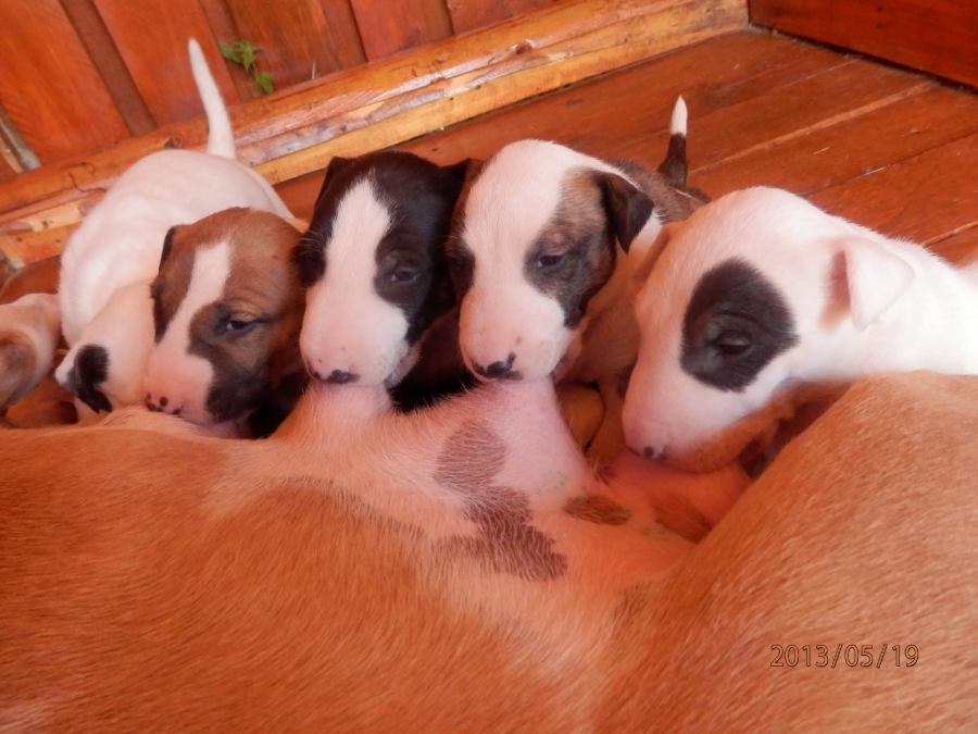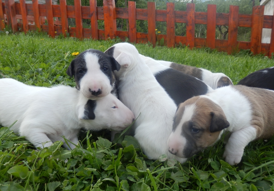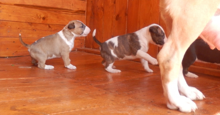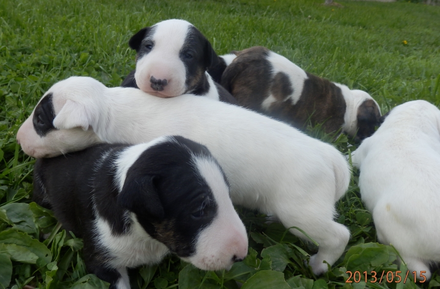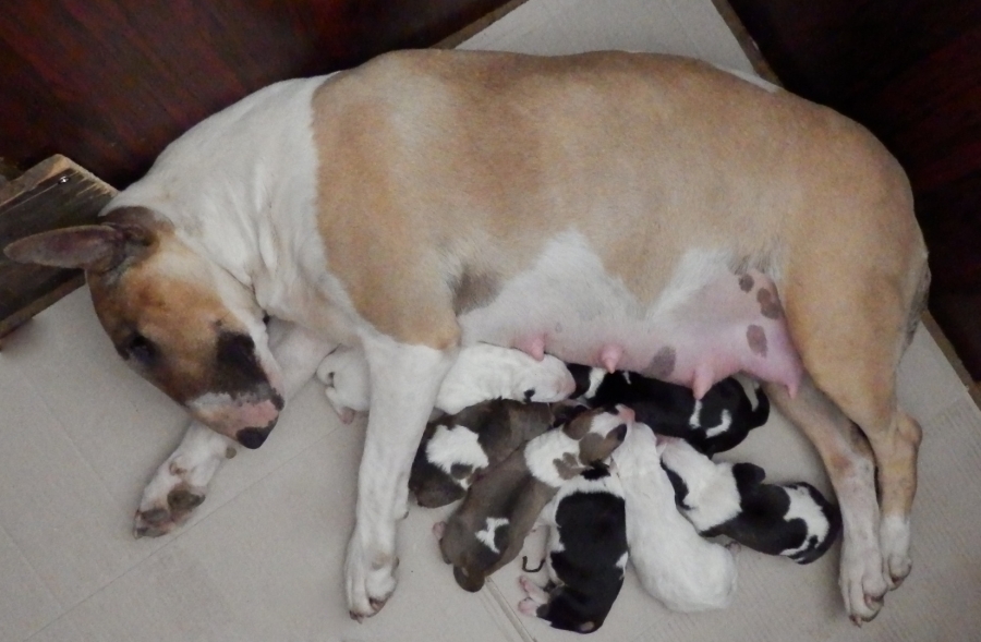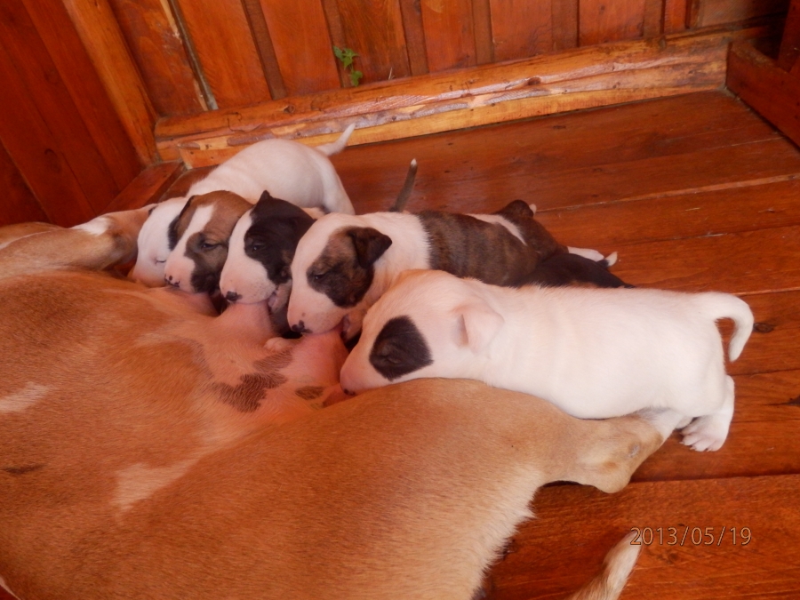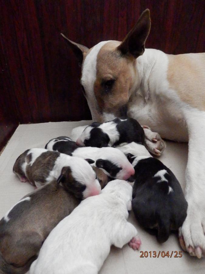 otec: ALL RIGHT Bull of Diamond (biely); (stará matka: biela, pásikavé zn., starý otec: biely, čierne zn.)
